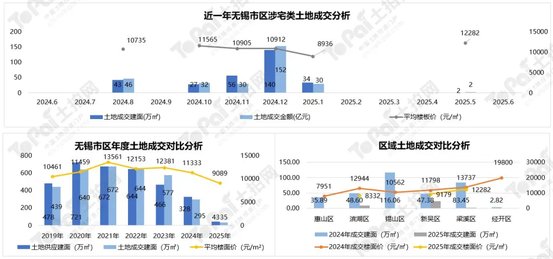 市区土地分析:2025年上半年,无锡市区成交6宗涉宅地块,成交建面35.13万㎡,成交金额31.92亿元。